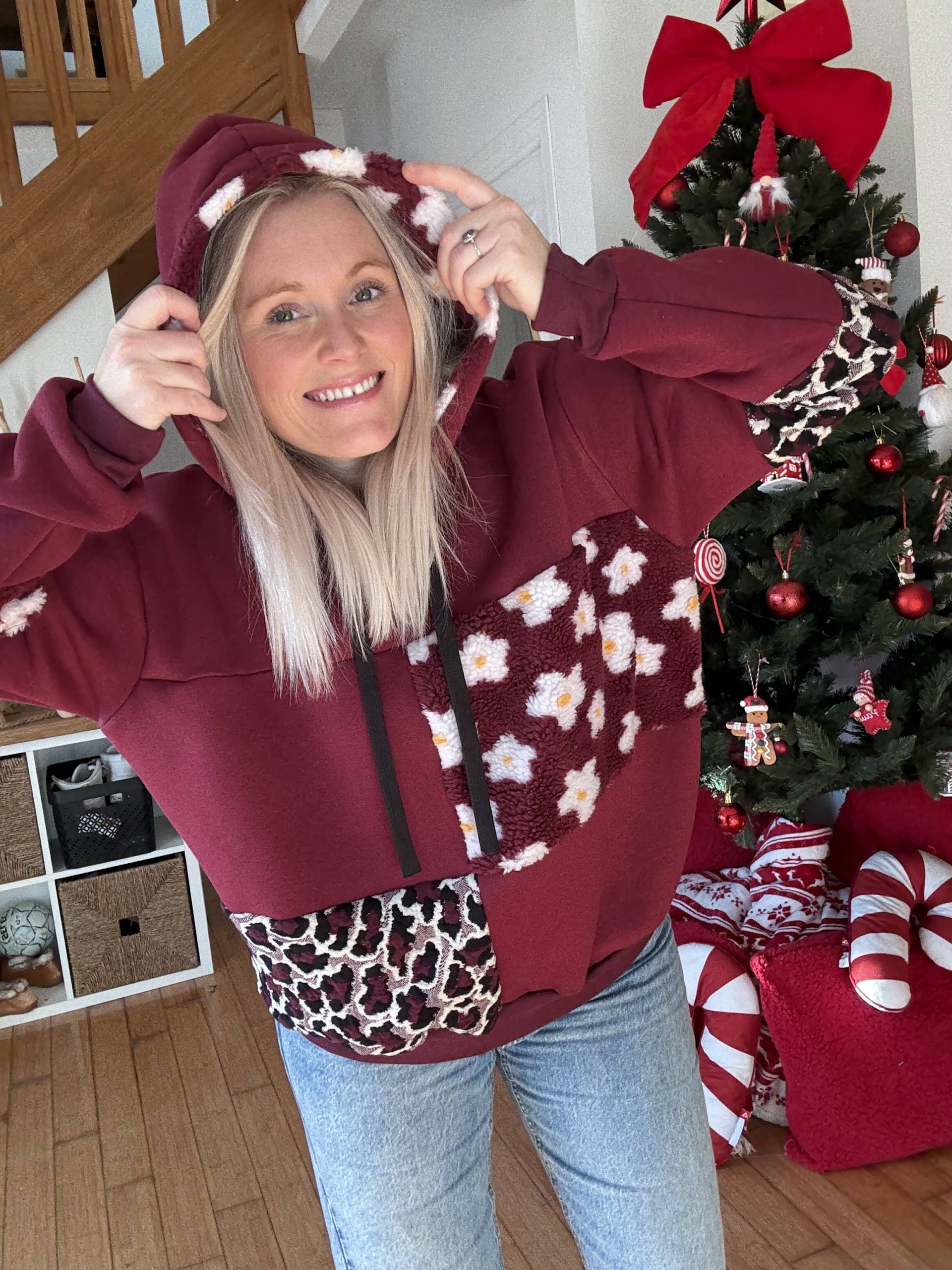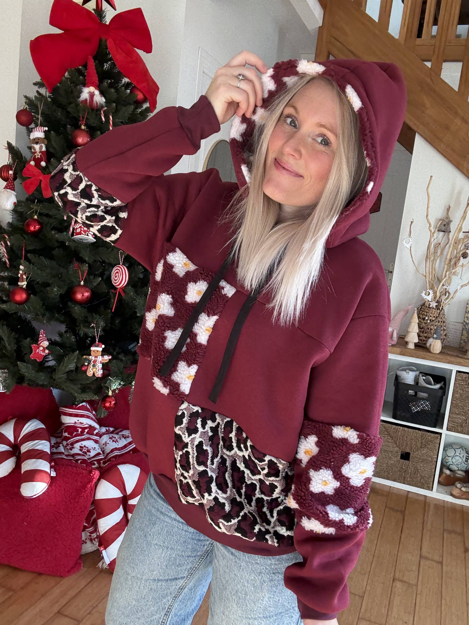 Sweat à capuche bien chaud avec différentes associations de tissus pour un rendu très sympa!!