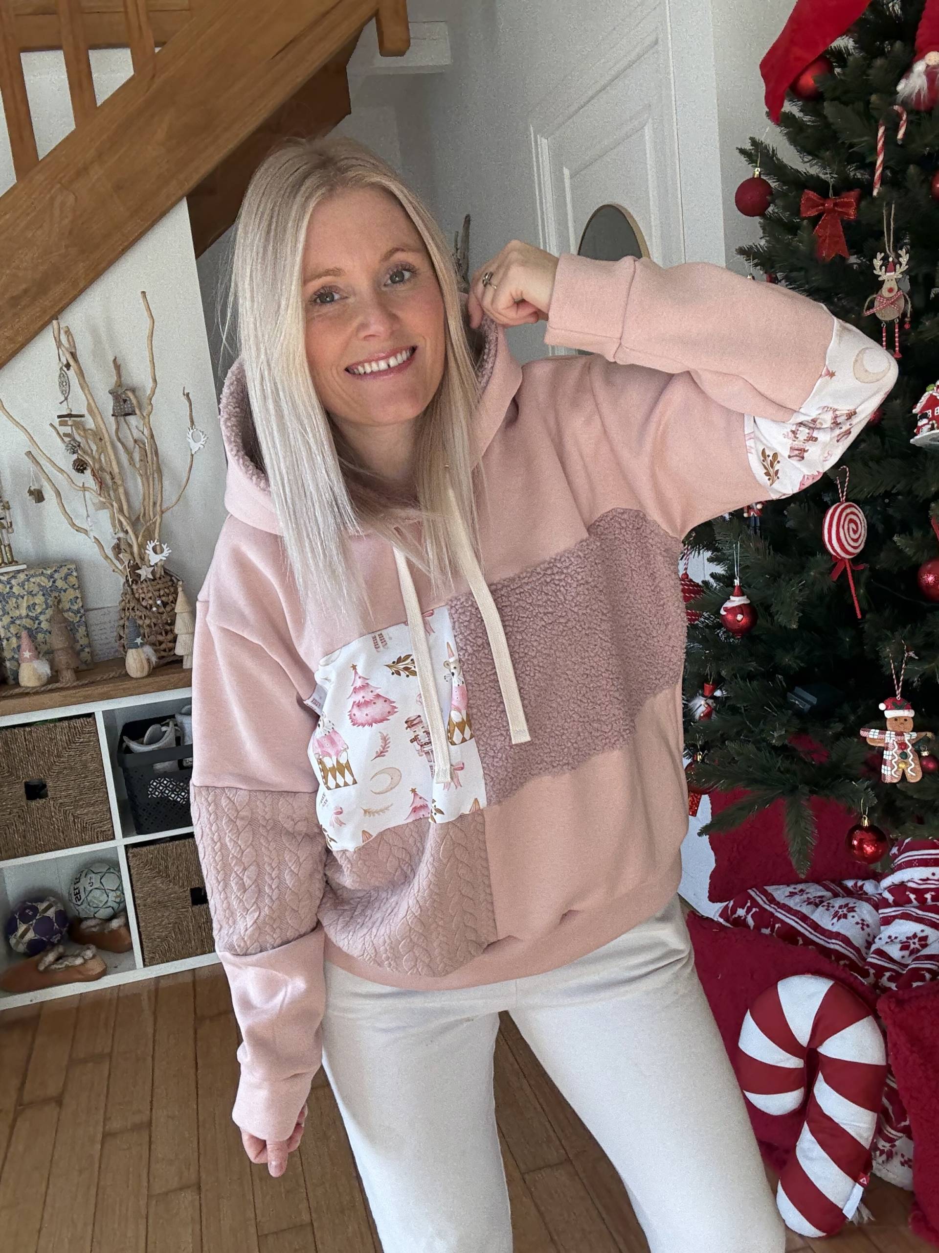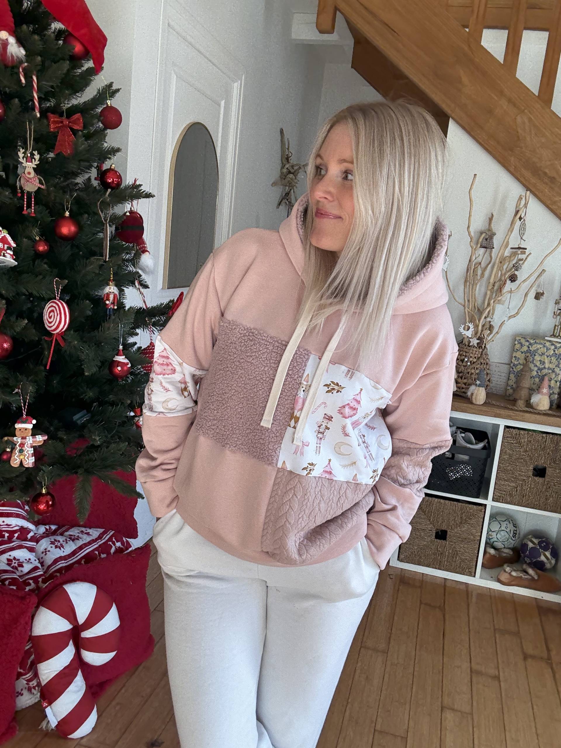 Sweat à capuche bien chaud avec différentes associations de tissus pour un rendu très sympa!!